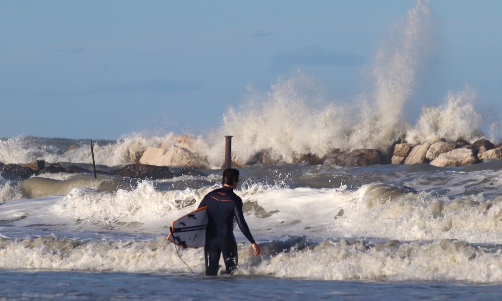 Una potente e veloce tempesta di Bora, con raffiche di oltre 110 km/h, ha seminato danni, caos e panico per tutta la Romagna. Alberi caduti, bagni devastati, strade allagate, disastri ovunque. Poi nel pomeriggio il vento ha girato leggero da Maestrale portando sole, quiete e onde potenti e ben formate. Questa mareggiata ha fatto calare le temperature di oltre 15 gradi, segnando la fine dell’estate 2022. Tutti gli scatti sono di Andrea Di Pietro.