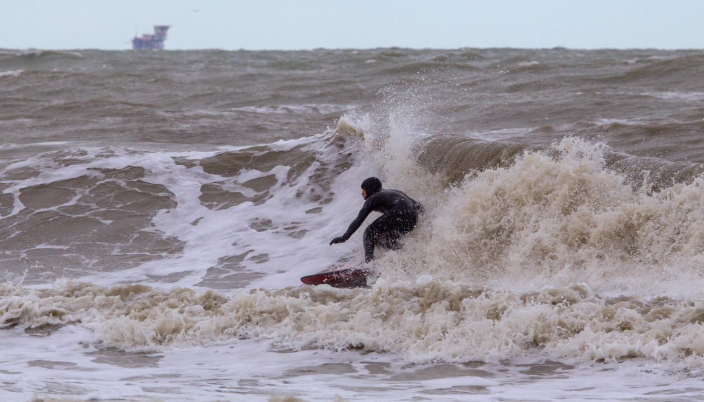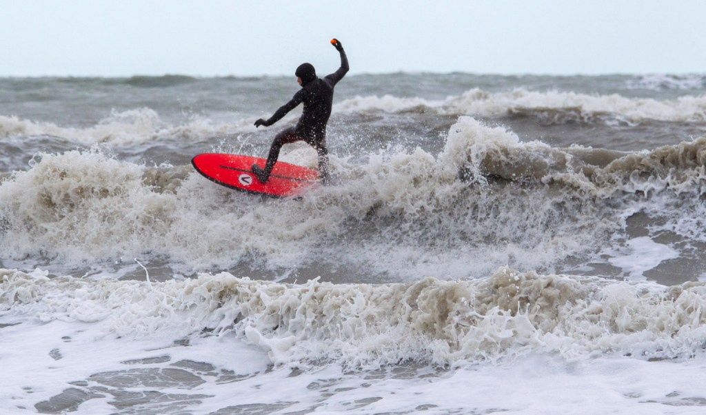 Una giornata fredda e ventosa, tipica di fine Gennaio. Mare grosso e tanta corrente. Solamente Andrea Di Pietro in acqua a godersi le onde incasinate ed Andrea Fiumi in spiaggia a scattare.