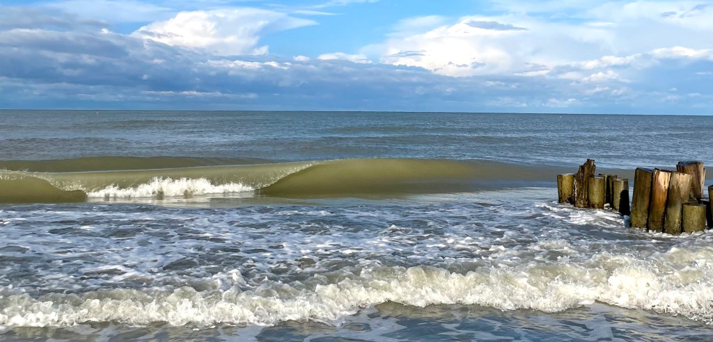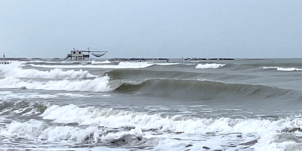 Un veloce impulso di Bora sull’Alto Adriatico, accompagnato da un costante vento di Maestrale sottoposta da una super alta marea di luna piena, ha generato lunghe barre lisce e ripide. Il tutto sotto a una pioggia fresca ed un calo termico di oltre 10 gradi. Un regalo estivo quasi inaspettato.