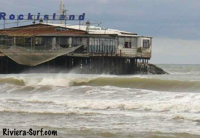 Sul lato sud del portocanale di Rimini, dove sorge il disco-pub “Rock Island” direttamente sul mare. Onde prevalentemente sinistre con diverse sezioni. Lavora con mareggiate da N, N/E ed E e regge discretamente il vento attivo quando non è molto forte.