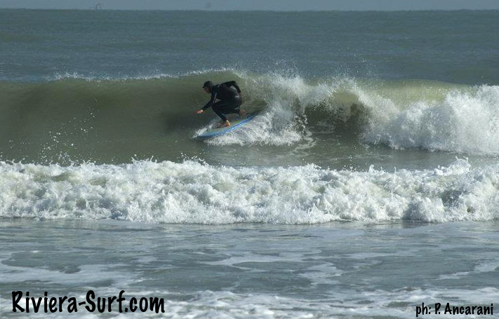 Passate dall’ ultima stradina a nord del paese (a fianco alla pineta) e parcheggiate davanti al bagno Go-Go. La secca si trova davanti al moletto più a nord, di fronte all’ ultimo palo. Onde destre, solitamente lunghe e manovrabili, meglio con con marea media o alta. Lavora con mareggiate da E e S/E, regge discretamente Scirocco attivo.
