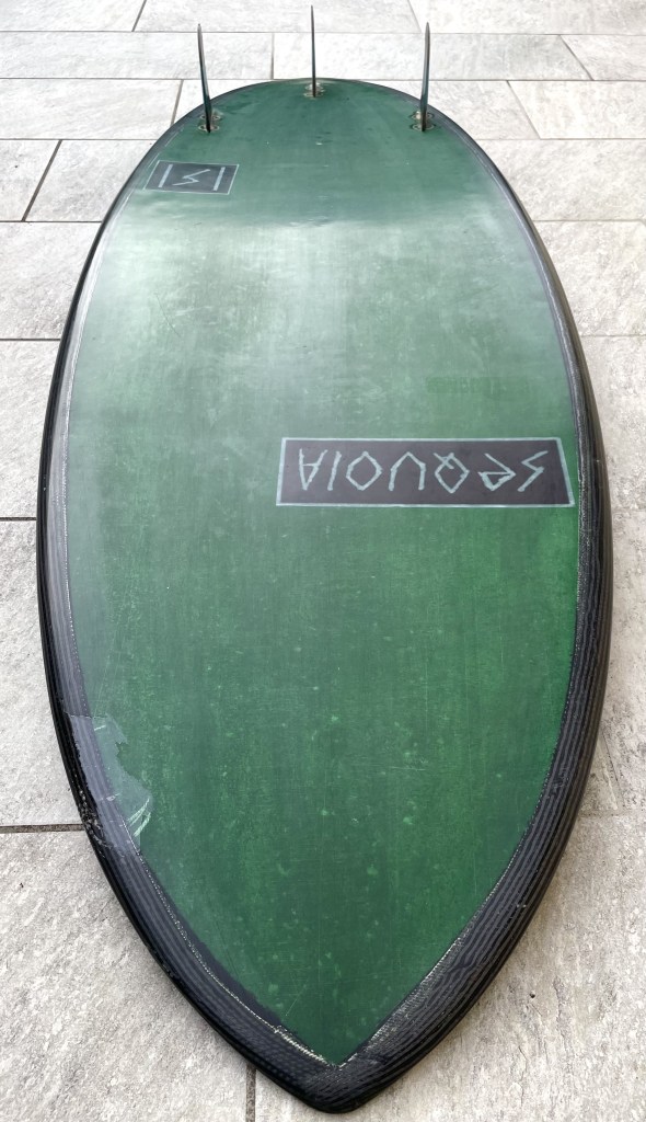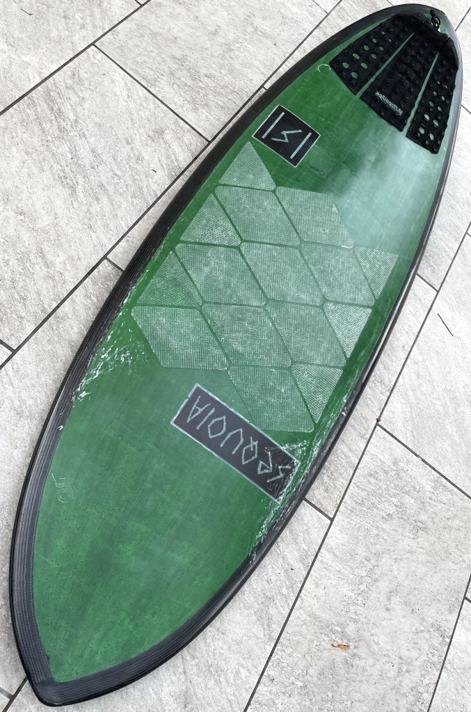 Sequoia prototipo (molto simile alla HS HyptoKrypto), costruita in Epoxy e con i bordi in carbonio, misure 5’3” x 19”3/4” x 2”1/4, pinne con sistema FCS (ma resinate dentro alle scasse), una piccola crepa su un bordo ma già riparata, pad posteriore e grip anteriore. Ottima per surfisti intermedi leggeri ed esperti. Andrea 3333142188.